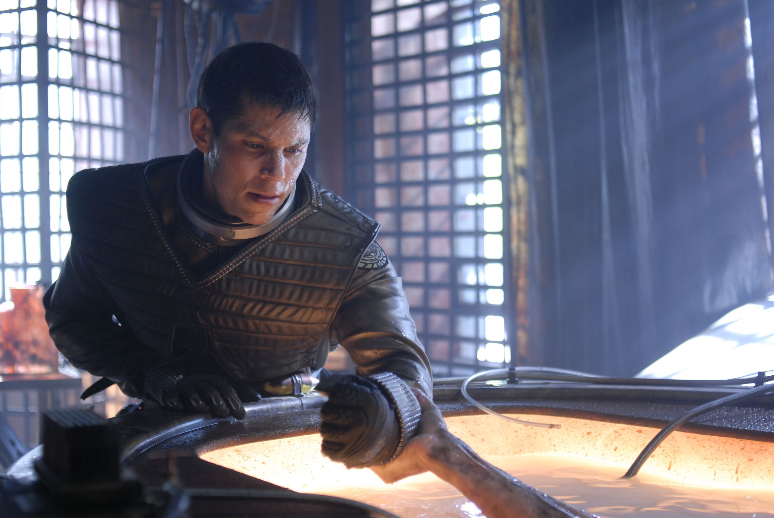A promotional photo released for an unknown episode from one of the Battlestar Galactica series.