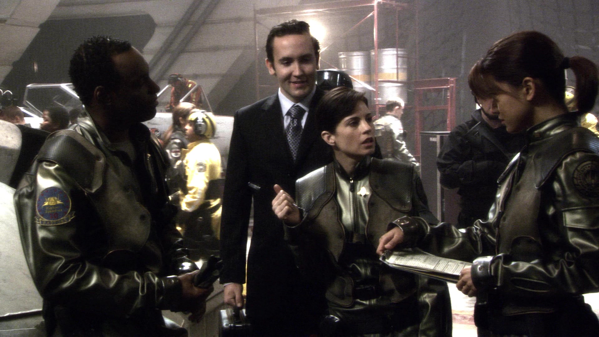 Alan Hughes annoys Margaret "Racetrack" Edmondson just prior to his final departure (TRS: "The Son Also Rises").