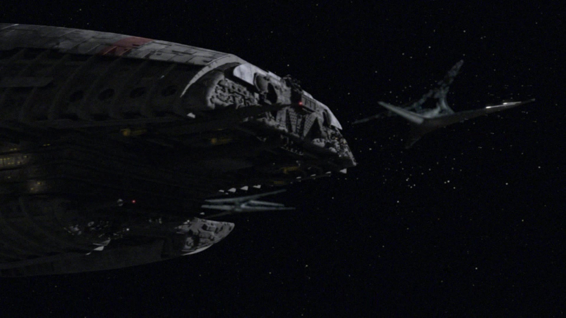 Two Basestars attacking Galactica (TRS: "33"). Used in Basisschiff.